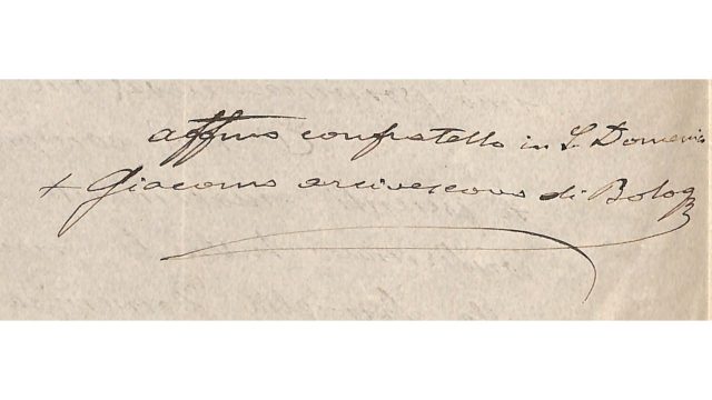 Nel firmarsi, l’Arcivescovo di Bologna adopera il termine confratello, segno della formale appartenenza all’Ordine. La lettera, poi, dimostra la benevolenza sincera del Pastore di Bologna nei confronti dei frati e dei laici terziari tramite la cooperazione per l’organizzazione del congresso.